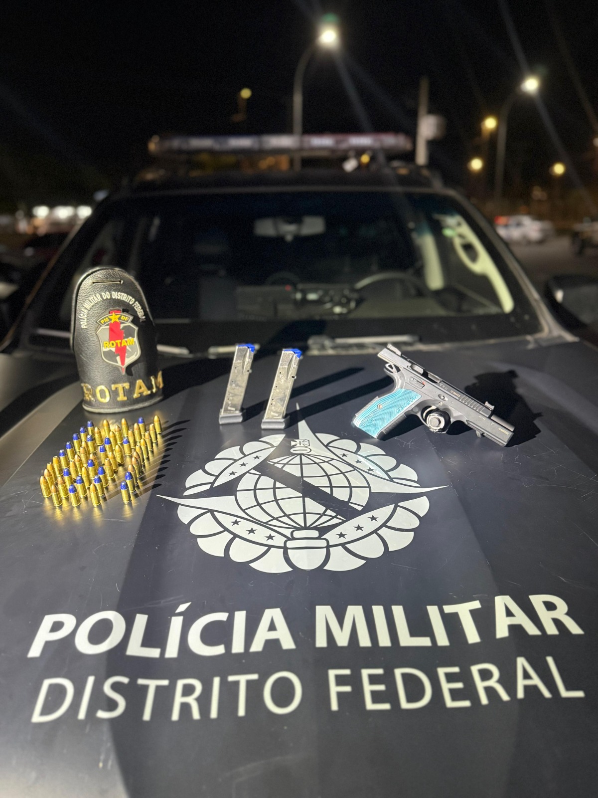 A primeira intervenção ocorreu na QS 11, Conjunto C, no Areal, onde os policiais flagraram uma jovem de 17 anos e um homem de 37 anos com um carregador de pistola 9 mm contendo 19 munições. Durante a busca, os militares ainda encontraram uma pistola 9 mm com 18 munições escondida sob a cama, além de outras 12 munições no quarto. Ao notar a aproximação da equipe, a adolescente tentou ocultar o carregador no decote, enquanto o homem — condenado a 56 anos de prisão por crimes como homicídio, roubo e porte ilegal de arma — tentou interferir na ação policial. Ambos possuíam longo histórico criminal.